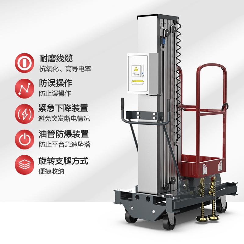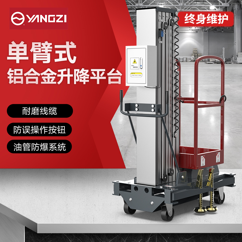 揚子升降平臺:載重量大,穩(wěn)如磐石,防誤操作按鈕,人性化旋轉(zhuǎn)支腿,便于收納,機身穩(wěn)定。還預(yù)留了叉車孔便于升降機移動,使用的是進口尼龍滾輪