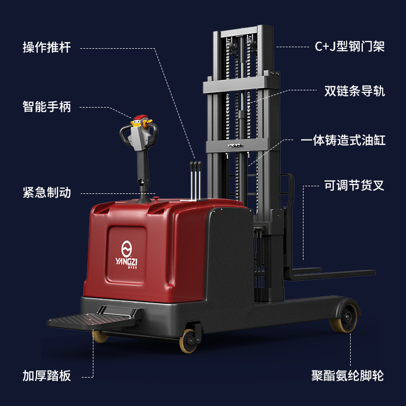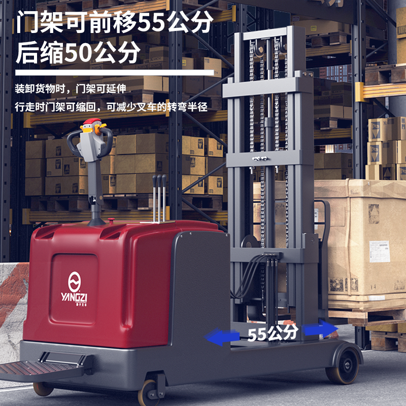 揚子推高車 CQD-J:不用條托盤的前移式電動堆高車,增強載重,通過性強,貨叉前段可緊貼地面方便叉取貨叉,而且門架后仰時貨物穩(wěn)定不易滑落,使用更安全放心。
