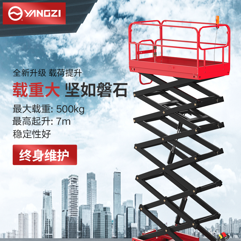 揚子剪叉式電驅步行式平臺SJY:剪叉式電動升降平臺穩(wěn)定性更好,高強度好品質首選揚子品牌