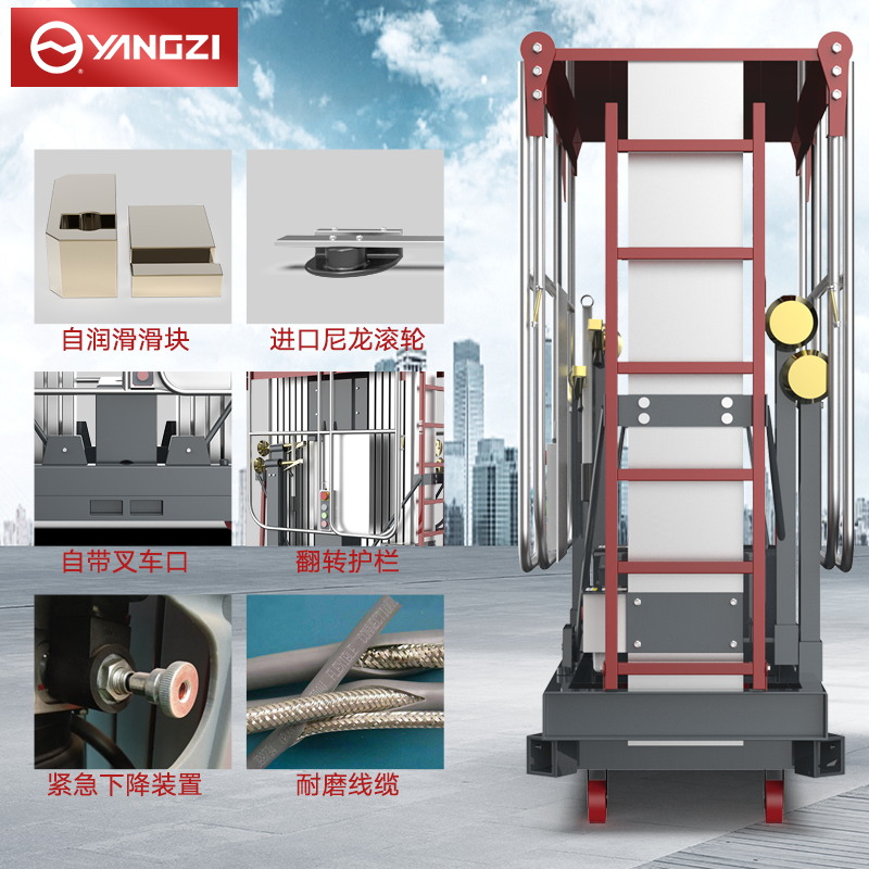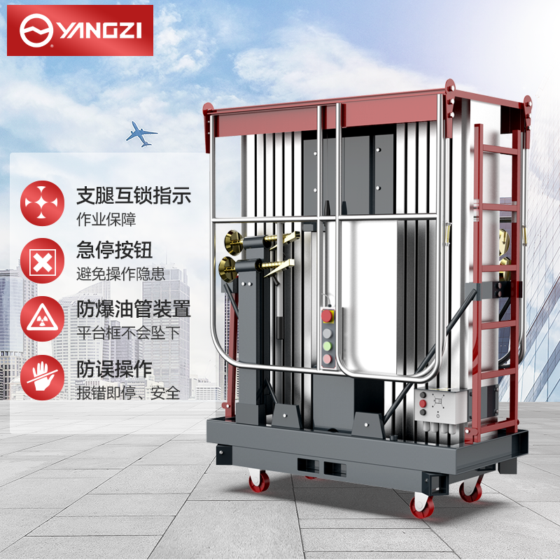 揚(yáng)子高配雙柱鋁合金升降機(jī)YZGS2:擁有雙電源操作平臺(tái),防誤操作按鈕更安全,多場(chǎng)景使用,可以商用維護(hù)物業(yè)維護(hù)工業(yè)安裝等。
