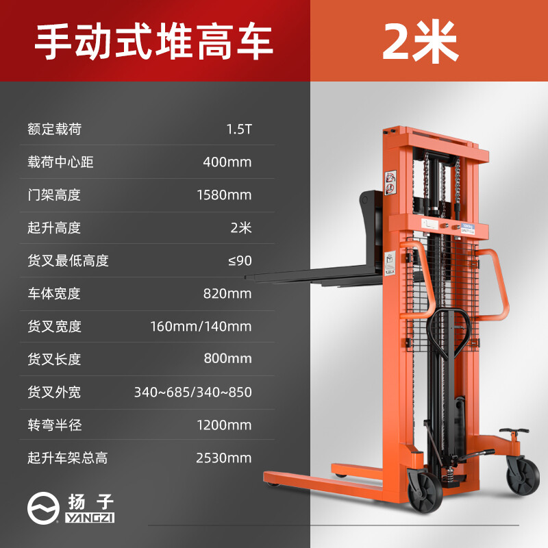 揚(yáng)子手動(dòng)液壓堆高車SDD:揚(yáng)子手動(dòng)液壓堆高車經(jīng)濟(jì)實(shí)惠,新手不加價(jià),配置好不講究,手動(dòng)液壓堆高方便省力省時(shí)。
