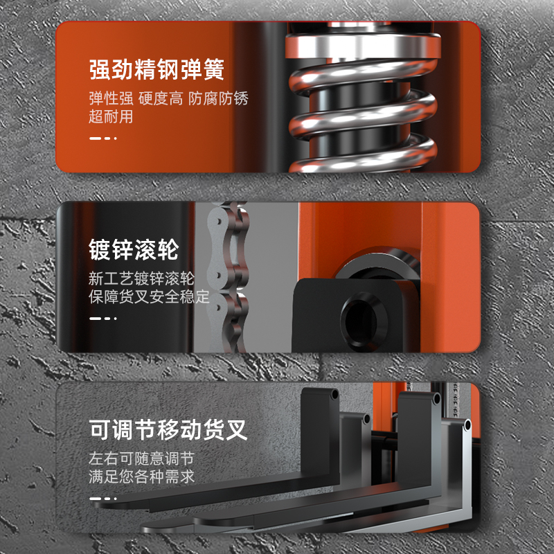 揚子1016手動液壓堆高車:強大承載,加厚引力,動力總成,高品質(zhì)油缸,密封性好不漏油,減少煩惱,使用壽命長,降低維修成本,提高效率,機身加厚加粗,用料實足,堅實耐用。