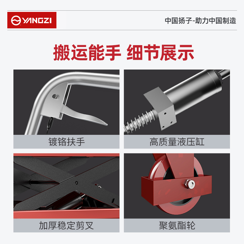 揚(yáng)子TF-15手動(dòng)液壓平臺(tái)車:品質(zhì)高端經(jīng)久耐用,加厚鋼材,升級(jí)動(dòng)力系統(tǒng),升級(jí)油缸系統(tǒng),加厚剪叉,耐磨腳輪,可折疊手柄,還可以控制速度,防腐蝕,效率高,售后好